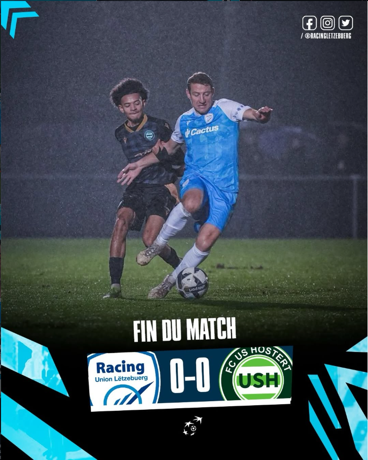 Le Racing Union Lëtzebuerg partage les points face à l’US Hostert (0–0) lors du dernier match de la phase aller de la BGL Ligue.